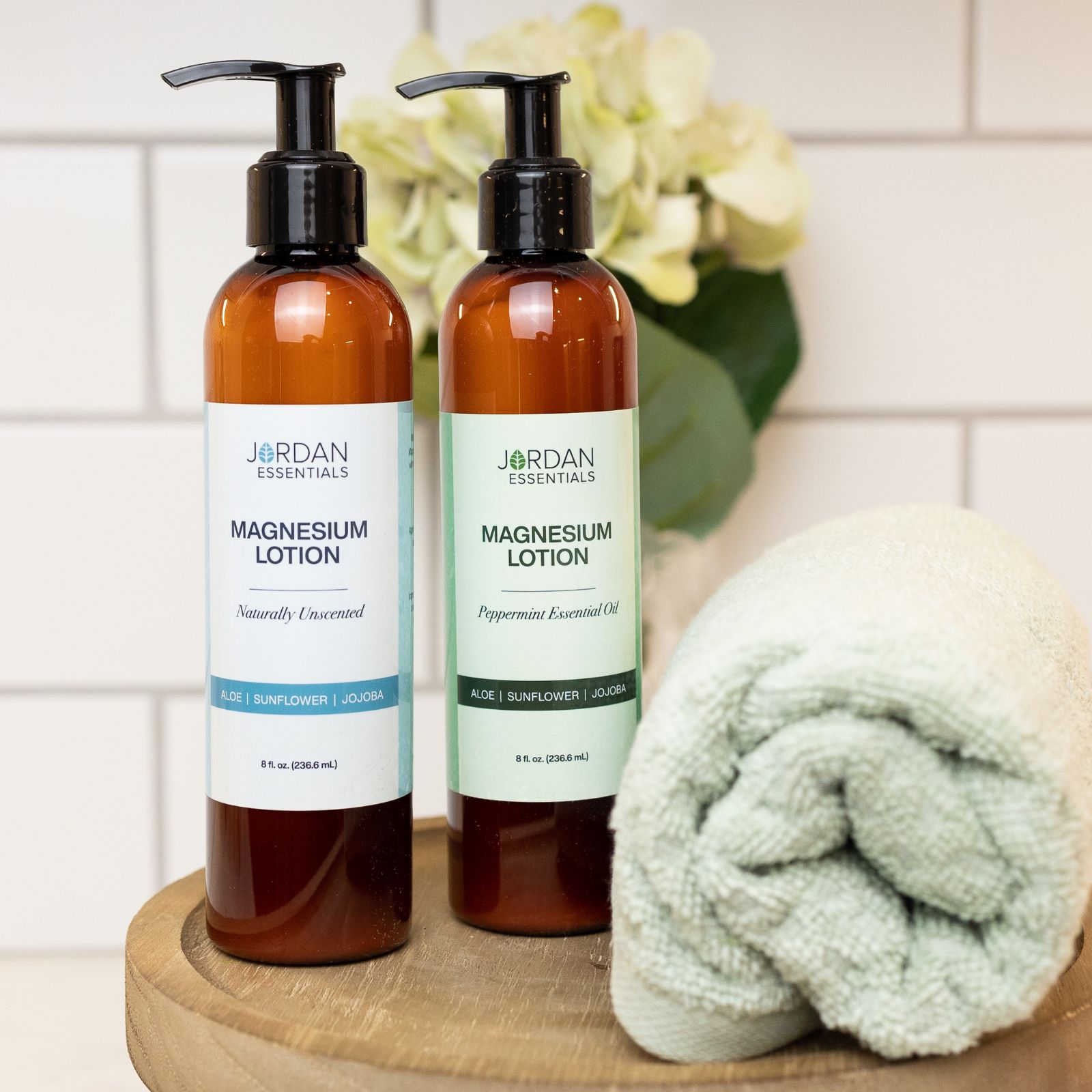 Smooth this hydrating, soothing lotion across tired, achy muscles, and pain quickly fades away. Just 3 pumps provide a daily dose of Magnesium. Organic botanicals such as Sunflower Oil, Jojoba Oil, and Aloe deliver extra nutrients to your skin. Choose from naturally unscented or Peppermint Oil infused lotion.